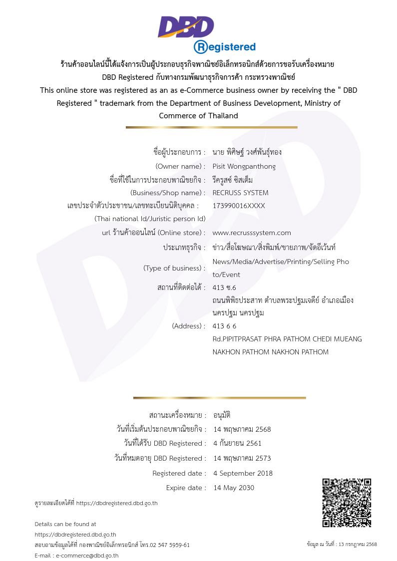 จดทะเบียนรับรอง โดยกระทรางพาณิชย์